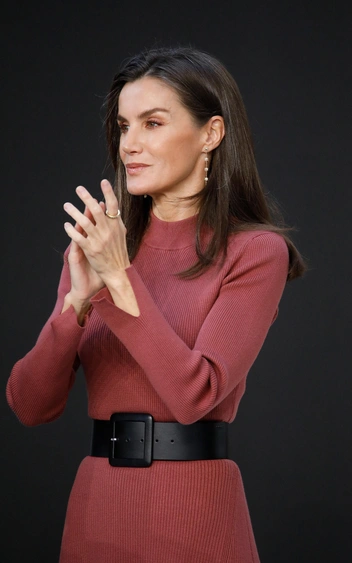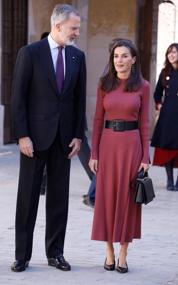 В 2024 году в моду вошли kitten heel — это лодочки с острым носом на каблуке максимум 4 сантиметра. Они стали так популярны благодаря «офискору» и желанию женщин выглядеть в деловом стиле, не жертвуя собственным комфортом. На этот раз такую обувь выбрала и испанская королева Летиция. Она сочетала черные лодочки с трикотажным платьем бордового оттенка и грамотно подобрала аксессуары — черный пояс, который подчеркнул талию, и небольшую, но вместительную сумку, также черного цвета.