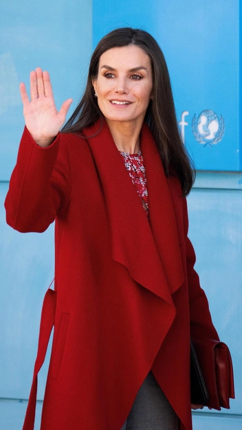 Королева Летиция — наша новая икона стиля. Каждый ее выход — вдохновение, в том числе и тот, в которым она недавно появилась в Мадриде. Монаршая особа надела красную блузу с цветочным принтом, серые расклешенные брюки со стрелками. Завершила она выход пальто-халатом, кожаным клатчем и бархатными остроносыми туфлями.
