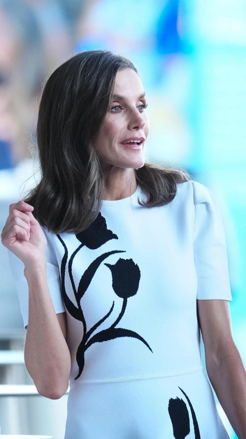 Рассматриваем новый выход королевской особы. На этот раз Летиция отдала предпочтение белоснежному платью с акцентным узором в виде тюльпанов. Наряд она выбрала тот, который подойдет женщине с любой фигурой: у него зауженный крой и широкая юбка. К нему королева Испании подобрала лаконичные босоножки на небольшом каблуке, вместительный клатч и длинные серьги в форме цветка.