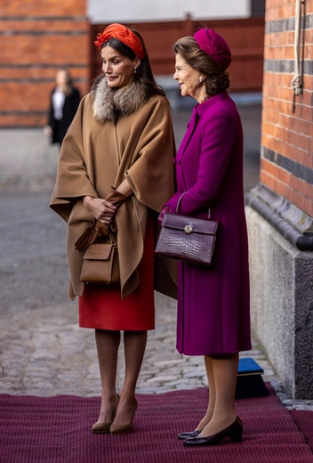 Сейчас монаршая семья Испании находится в Швеции, где их тепло принимают королева Сильвия и Карл XVI Густав. Хотя королевские визиты чаще наносятся для налаживания отношений между странами, не менее интересно наблюдать и за модными выходами самых известных монарших особ. Королевские модницы с ответственностью отбирают наряды для выходов и каждый раз стараются поразить поклонников. Новый совместный выход Летиции и Сильвии тоже привлек немало внимания. Испанская королева выбрала классический бежевый кейп с меховой отделкой, а шведская правительница — фиолетовый тотал-лук с пальто и шляпой в тон (и мы не можем определить своего фаворита).