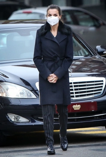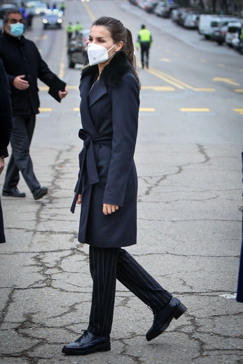 На днях Ее Величество посетила октрытие памятника работникам здравоохранения, погибшим во время пандемии коронавируса в Мадриде. Учитывая тональность мероприятия, королева уделила особенное внимание выходному образу и подала пример стильного выдержанного аутфита для зимнего периода. Супруга Филиппа VI примерила синее пальто с воротником с меховой отделкой, черные брюки в вертикальную полоску и классические ботинки в тон образа — стильный вариант для любого официального мероприятия.