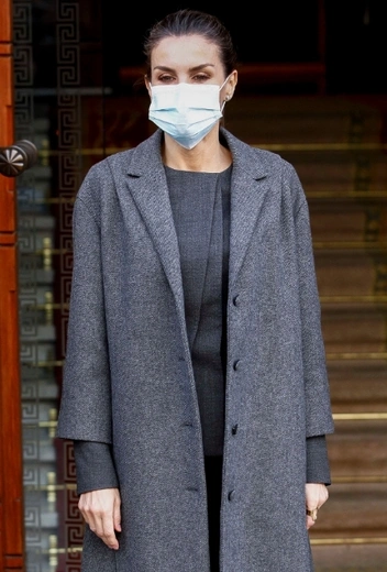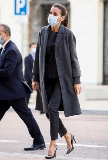 Королева Испании — одна из немногих королевских особ, которая отваживается экспериментировать с серым цветом и его оттенками в своих выходах. Считается, что такое заигрывание крайне рискованно, ведь, несмотря на все усилия модных дизайнеров, у большинства людей серый ассоциируется с подавленным настроением, тоской и цветом для домашних аутфитов (и только). Супруге Филиппа VI есть что возразить по этому поводу: дело не в цвете, а в том, как его обыграть. Летиция предпочитает брючный костюм с укороченным низом и верхом с оригинальной текстурной отделкой. Свой образ королевская особа дополняет классическим пальто и элегантными туфлями-лодочками в тон лука.