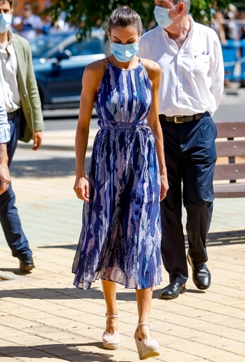 Очередной выход королевы Летиции в рамках тура по регионам Испании настойчиво напоминает нам о заветных летнях целях – подкачать ягодицы, вернуть пресс и придать рукам красивую точеную форму, как у Ее Величества. Уж в чем, а в последнем с ней может сравниться разве что герцогиня Кембриджская, которая активно занимается теннисом и также не упускает случая продемонстрировать результаты своих трудов. Для визита в Севилью и Кордову королева Испании примерила новый женственный образ: сине-фиолетовое платье Adolfo Dominguez дополнили эспадрильи на танкетке Macarena и драгоценные украшения Karen Hallam.