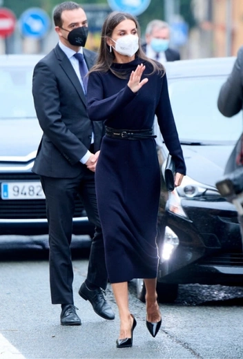 В Испании продолжается сезон киномарафонов, внимание к которому проявляет и королевский двор. На днях Ее Величество посетила Opera Prima Film Festival в городе Туледа и лично поучаствовала в церемонии награждения. Для публичного выхода супруга Филиппа VI подобрала образ, в котором идеально сочетаются женственность и стремление к комфорту: Летиция примерила темно-синее трикотажное платье от бренда COS, которое дополнили ремень Burberry, туфли-лодочки Prada и клатч Boss — все в черном.