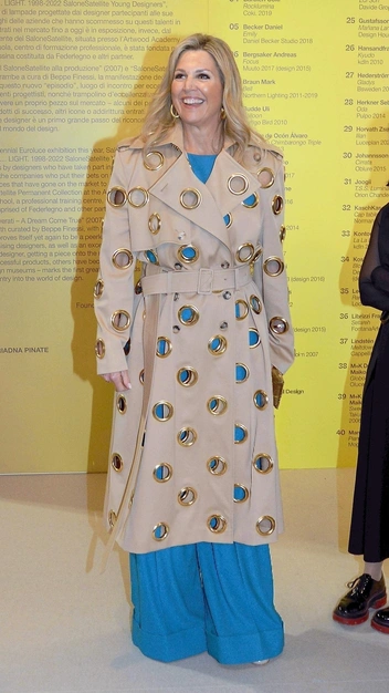 Королева-консорт Нидерландов появилась в необычном образе, который мы совсем не ожидали увидеть на монаршей особе, но поэтому он настолько и прекрасен. Максима примерила костюм в насыщенном синем цвете, который состоит из лаконичного лонгслива и широких брюк. Поверх образа она надела необычный бежевый тренч с отверстиями, который вряд ли спасает от ветра, но служит безупречной деталью выхода.