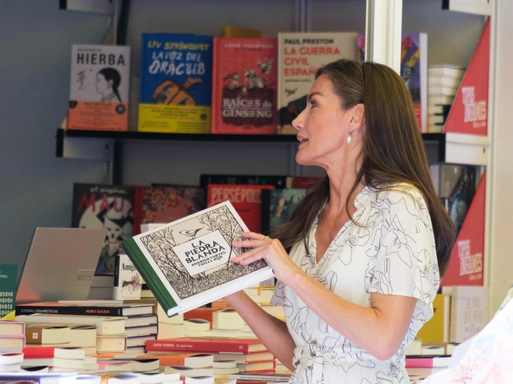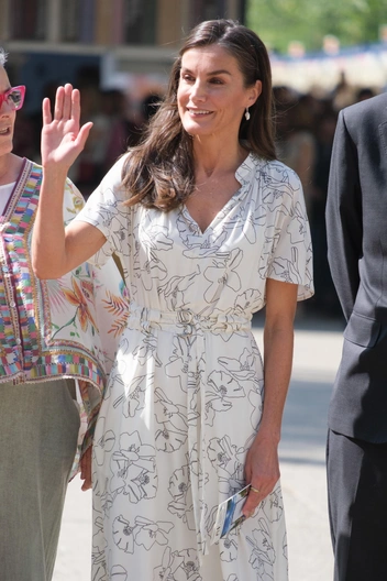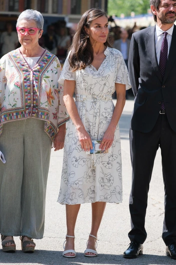 В последний раз Летиция отправилась на недавно открывшуюся ярмарку, чтобы выбрать новую книгу. Королева предпочла максимально простой образ с платьем с принтом и босоножками на низком каблуке. Но это уже прогресс — еще недавно королеве вообще было запрещено носить каблуки из-за болезни ног.