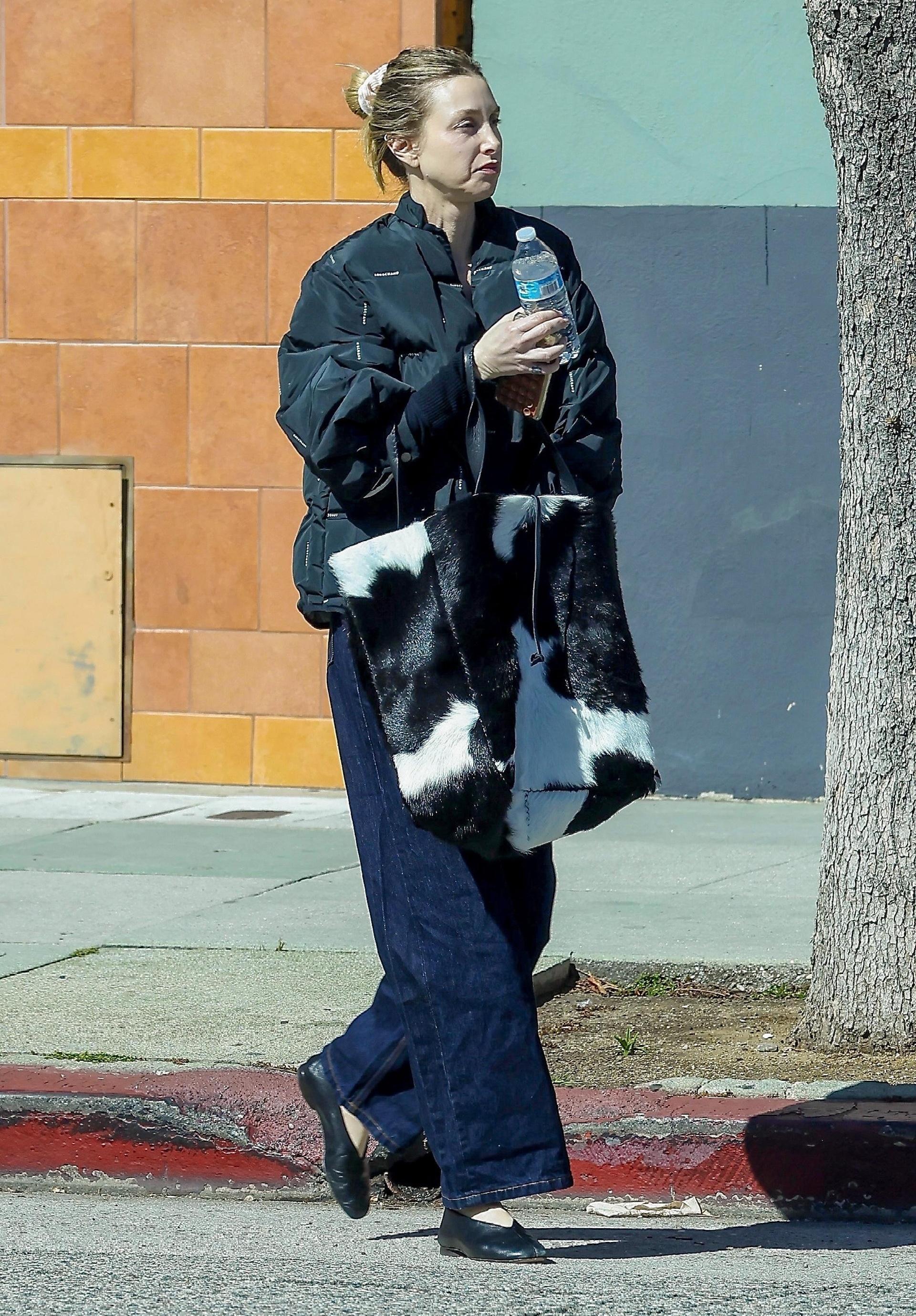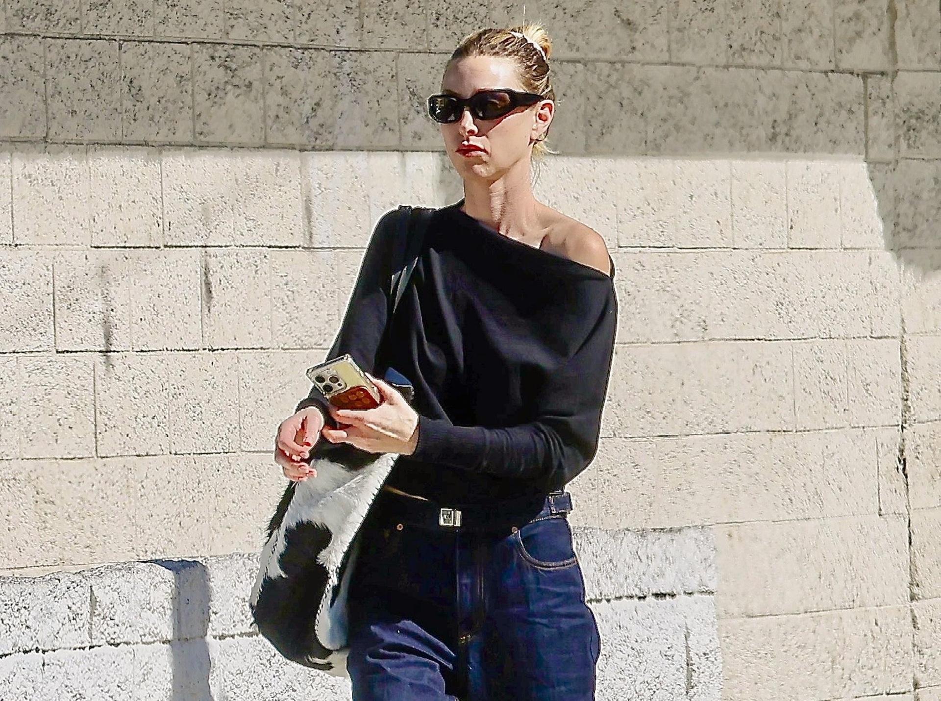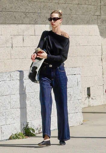 Коровий принт никуда не уходит, он просто переместился в аксессуары. Уитни Порт показывает, как носить его по‑взрослому — базовый темно‑синий деним, черный бомбер и лаконичные кожаные лоферы она дополняет огромной шопер‑сумкой с cow-рисунком, которая превращает максимально простой аутфит в стритстайл‑лук уровня фешн-шоу. Этот образ еще раз доказывает, что сегодня анималистика лучше всего смотрится именно в формате одной крупной, но очень функциональной детали.