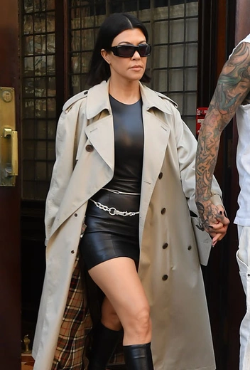 Хотя главной законодательницей трендов из семьи Кардашьян-Дженнер называют Ким, Кортни тоже уверенно заявляет о себе. Гардероб у старшей сестры более сдержанный и универсальный, при этом она нередко экспериментирует с тенденциями. Новый аутфит звезды стоит взять на заметку. 42-летняя знаменитость отправилась на прогулку со своим возлюбленными Трэвисом Баркером в лаконичном образе с перчинкой и выбрала мини-платье из кожи с поясом-цепочкой, дополненное классическим бежевым тренчем.
