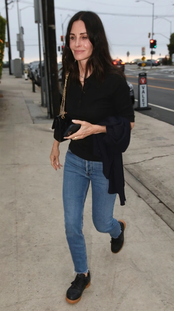 В 90-е и 00-е Кортни получила статус модной иконы. Образы Моники Геллер, а позже и актрисы, исполнившей эту роль в сериале «Друзья», копировали миллионы. Сейчас, когда интерес к прошлой модной эпохе снова возрос, наряды героини Кортни вновь актуальны. А вместе с тем растет и интерес к тому, как Кокс одевается сейчас. Актриса предпочитает комфортные и понятные образы, например, сочетание джинсов скинни с базовым черным кардиганом и кроссовками. Просто и стильно!