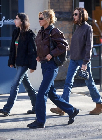 Белла Хадид показывает, что идеальная кожаная куртка будущего весеннего сезона — это винтажный бомбер с объемными плечами, как будто из гардероба нью‑йоркского хиппи из 70‑х. Модель носит его максимально просто: темный деним, худи и большая лаконичная сумка на плече, благодаря чему образ выглядит одновременно и утилитарно, и очень модно. Такой маскулинный бомбер легко вписывается в женский гардероб, а главное — делает даже самые базовые аутфиты продуманными и элегантными.