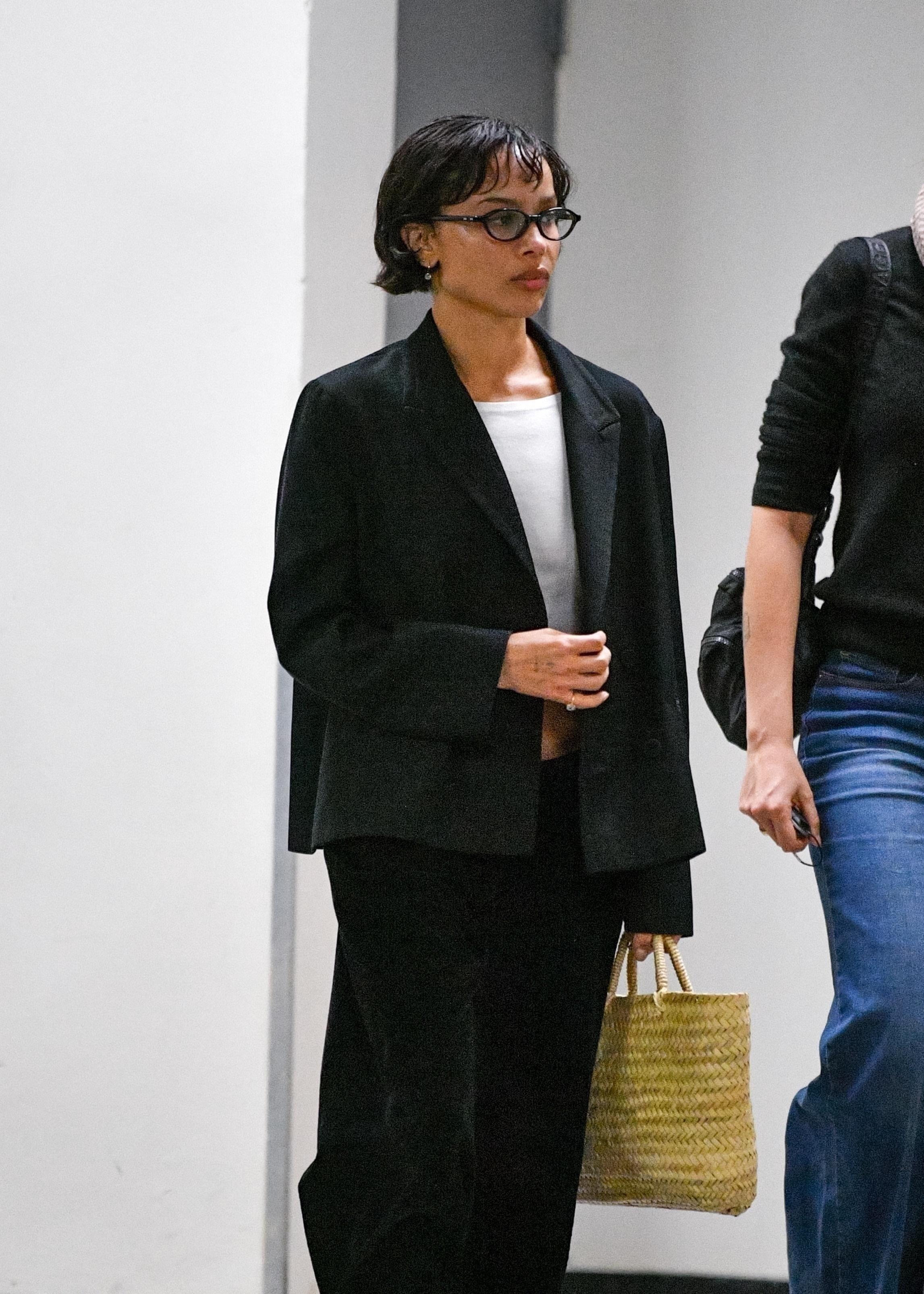 Зои Кравиц была замечена с шикарным бриллиантовым кольцом после ужина в Западном Голливуде. В последнее время, для светских выходов, Зои все чаще выбирает кольца с выразительными бриллиантами, в частности, с изумрудной огранкой или «button-back» дизайны, которые актриса предпочитает элегантно носить на мизинце. Помимо колец, Зои не изменяет себе и в выборе нарядов: она уже стала негласным амбассадором классических костюмов, которые актриса всегда умело разбавляет более неформальными аксессуарами: плетеной сумкой и обувью на плоском ходу.