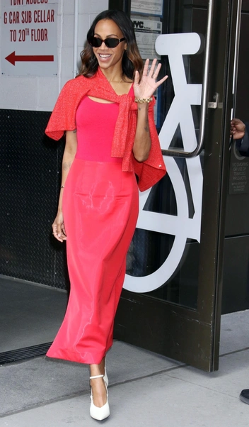Из-за активного присутствия butter yellow мы забыли про другой цвет года — красный. Отныне это не дерзкий и роковой, а повседневный цвет, помогающий разбавить гардероб. Например, как Зои Салдана — актриса пошла ва-банк и составила тотальный красный образ.
