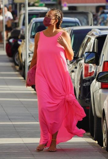 Зима все еще в самом разгаре, но некоторые тренды из весенне-летнего сезона можно носить уже сейчас. Например, ярко-розовый цвет, который в следующем году будет одним из самых актуальных. Повод примерить наряд в модном оттенке выдался Крисси Тейген. Вместе с супругом Джоном Леджендом она отдыхает на Сент-Барте и вовсю наслаждается возможностью носить легкие летние наряды. Для прогулки по городу она решила выбрать яркий образ – свободное платье в оттенке фуксии, сумку в тон и босоножки с тонкими перемычками.