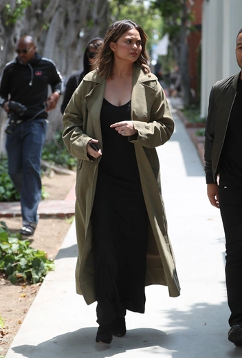 31 мая в Лос-Анджелесе папарацци подловили Крисси Тейген, когда она в компании любимого супруга Джона Ледженда отправилась на щопинг. Крисси недавно во второй раз стала матерью, поэтому решающим критерием при подборе одежды она сделала удобство. Что ж, длинное черное платье и легкое пальто цвета хаки у нее еще и очень симпатичные.