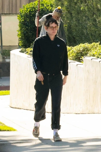 Кристен Стюарт выходит на прогулку в максимально «своем» стиле — в черном аутфите с уклоном в бунтарскую эстетику. Бомбер Fred Perry отсылает к британскому панк‑наследию, а джинсы с подворотами и аутдорные кроссовки продолжают ее линию нигилистичного, чуть подросткового настроения. В результате получается узнаваемая, почти андрогинная небрежность, благодаря которой стиль Кристен каждый раз так притягивает взгляды.