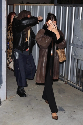 Хейли показывает, как сделать леопард желанным, а не кричащим: спокойная база из белого кроп‑топа, черных расклешенных брюк и объемной кожаной дубленки превращает пятнистую сумку и туфли в акцент, а не в овердрессинг. За счет мягкого силуэта, натуральных оттенков и повседневного кроя весь образ читается как расслабленный нью‑йоркский стрит‑стайл, где леопард уже не тренд сезона, а уверенная база, которая приживется в гардеробе у каждой.