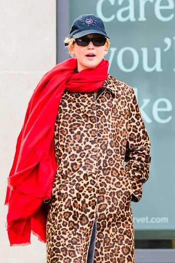 Дженнифер Лоуренс была замечена в Нью-Йорке, прогуливаясь с родителями в стильном осеннем образе, который сразу же привлек внимание модных папарацции. Актриса выбрала для выходного дня эффектное пальто с леопардовым принтом — смелый тренд, который Дженнифер умеет носить с особым шармом. Но даже на этом ярком акценте актриса не остановилась: она добавила к образу насыщенный красный шарф, и синий кепку, а на ногах — удобные ботинки от австралийского бренда Blundstone. Этот образ — отличный пример, как вписать модный леопардовый принт в реальный повседневный гардероб, сочетая его с базовыми, но стильными вещами и выразительными акцентами вроде красного шарфа.