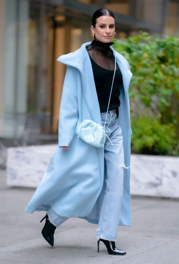 Хотя тенденций сейчас так много, что появляется ощущение, что в моде – абсолютно все, в главном цвете осени и зимы 2019-20 дизайнеры оказались солидарны друг с другом и представили массу вещей в небесно-голубой палитре. Лиа Мишель уже примерила новинку в актуальном оттенке – светлое пальто Mariam Al Sibai, которое она дополнила топом с прозрачной вставкой St. John и лакированными ботильонами ASHE.
