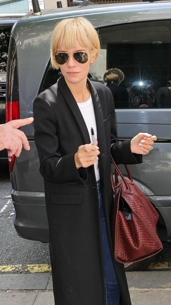 В аутфитах Лили Аллен выбирает простоту, присущую стилю кэжуал, — это базовая белая футболка и прямые джинсы с рваными краями и выбеленным эффектом, в которых она появилась на улицах Лондона не так давно. Дополнила повседневный образ певица элегантным длинным пальто, напоминающим пиджак, и трендовыми балетками с круглым мысом. Завершила звезда образ крупной бордовой сумкой и солнцезащитными очками.