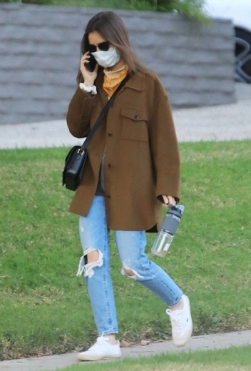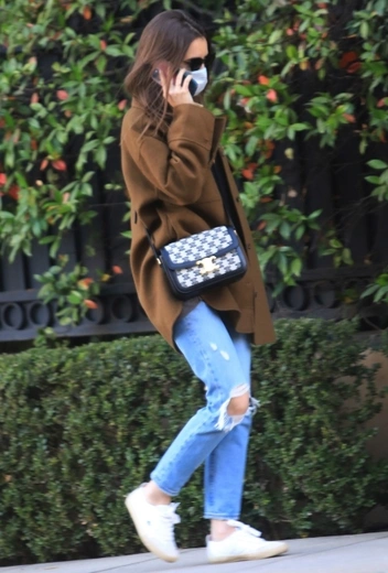 Вечное лето в Беверли-Хиллз — объект зависти многих звезд, которые живут в тех широтах, в которых зима наступает стремительно и проходит ну очень выраженно, вынуждая также быстро трансформировать свои фэшн-предпочтения. У актрисы Лили Коллинз есть возможность практически не менять их на протяжении всего года, а для прогулок в прохладные дни ограничиваться утеплением в виде стильного укороченного пальто, которое мы уже давно убрали на задние полки гардероба. Девушка подбирает удачный темно-коричневый оттенок верхней одежды, который стильно смотрится с денимом и приятно контрастирует с белым цветом. Аутфит дополняет мини-сумка наперевес и черные солнцезащитные очки.