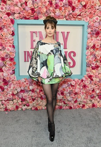 «Эмили в Париже» — один из самых обсуждаемых сериалов прошлого года. Одни ругают его за излишнюю инфантильность и наигранность, другие восхищаются легкой атмосферой и красивой картинкой. Продолжение сериала определенно будут обсуждать ничуть не меньше. Накануне в Лос-Анджелесе прошла премьера второго сезона, который возвращается на Netflix 22 декабря. Исполнительница главной роли Лили Коллинз решила появиться на премьере эффектно и взять за основу образ в стиле 60-х. Девушка примерила пышное мини-платье от Valentino и дополнила образ плотными колготками, босоножками на массивной платформе и узнаваемой укладкой в стиле Брижит Бардо и Джин Шримптон.