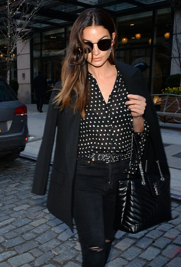 Лили Олдридж не из тех моделей, что выбирают модный авангард. Стиль экс-ангела Victoria's Secret — проверенная временем классика. Правда, скучными ее образы тоже не назвать. Так, 5 апреля, когда Лили запечатлели на улицах Нью-Йорка, она была одета в черную блузу в горох, черные скинни с прорехами на коленях и черное пальто. Дополнили тотал-лук Олдридж круглые черные очки и вместительная сумка от Saint Laurent — тоже, как вы понимаете, черная. Идеальный повседневный шик!