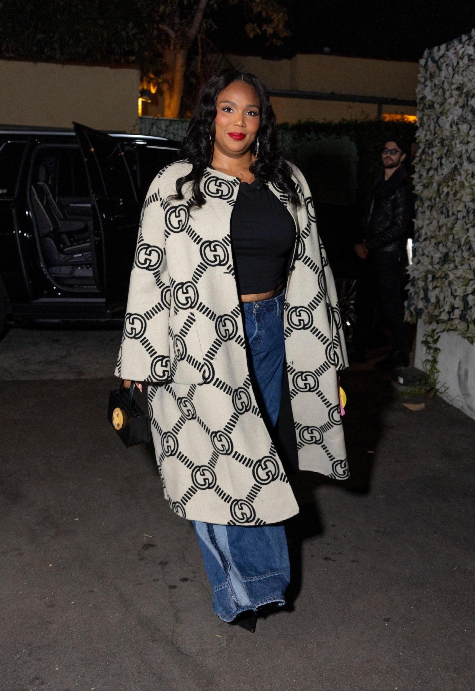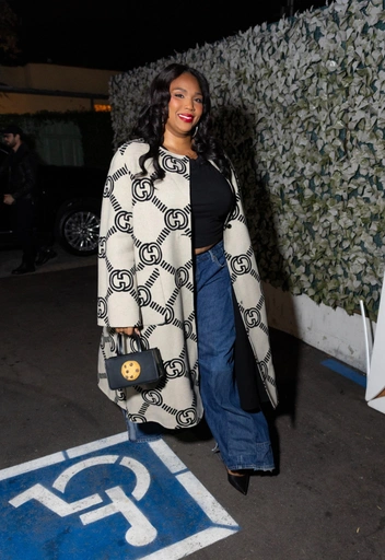 Лиззо уверенно заявляет: логомания возвращается — и прятаться от нее бесполезно. Вечерний выход певицы в длинном пальто с крупным монограммным принтом Gucci выглядит как манифест эпохи «чем больше логотипов, тем лучше»: на фоне максимально простой базы из черного топа и джинсов графичный узор становится настоящим героем образа. Компактная сумка и остроносые туфли добавляют структуру и делают аутфит более собранным, так что даже «тотальная логомания» выглядит не кричаще, а продуманно и по‑звездному демонстративно.