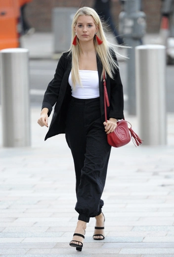 10 апреля в Лондоне младшая сестра Кейт Мосс Лотти отправилась на вечеринку. Образ юной модели оказался простым, но нарядным: белый топ, черные брюки спортивного кроя и черный бомбер. В качестве украшений — красные серьги-кисти и красная же сумка.