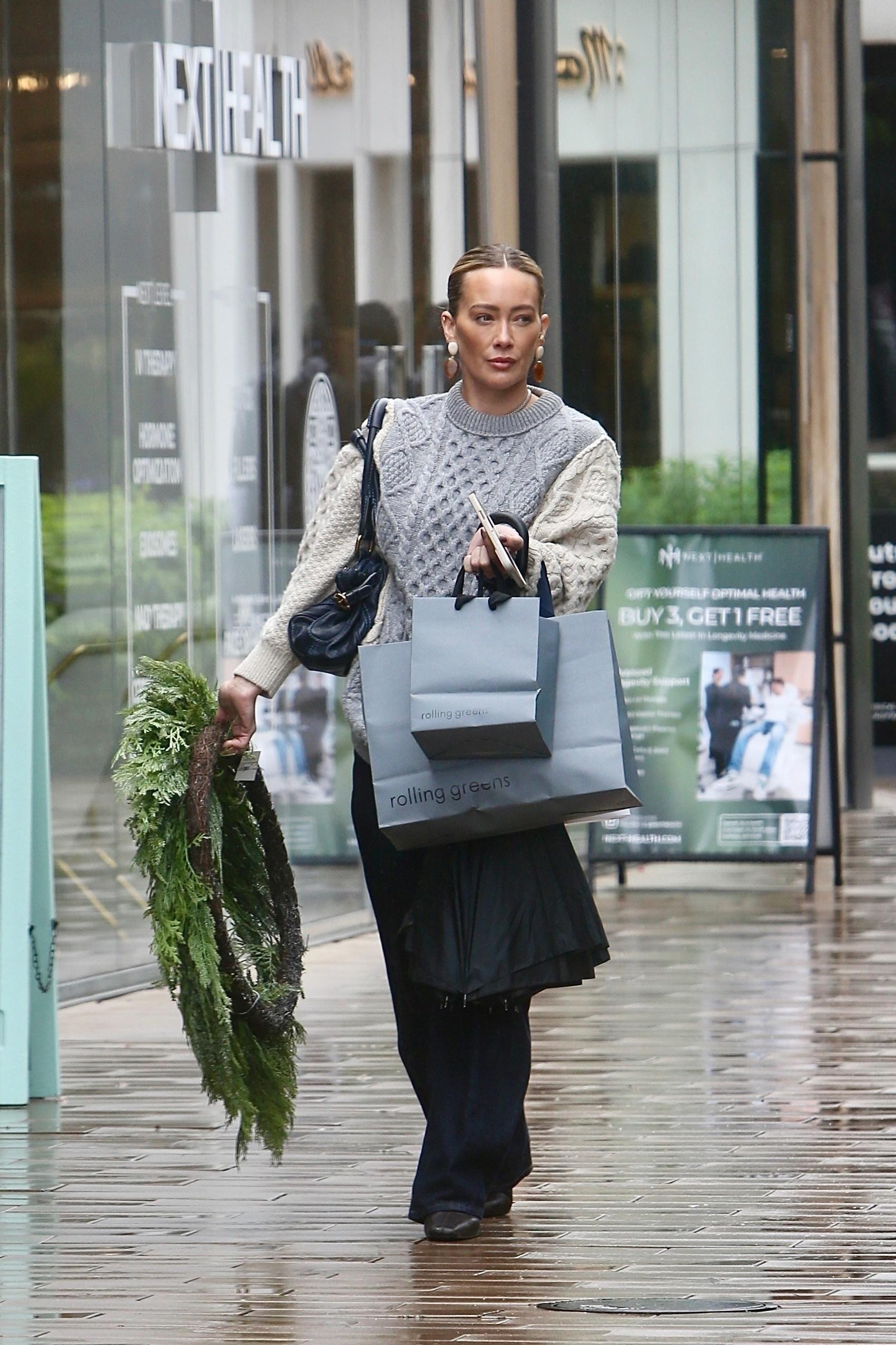Хилари Дафф демонстрирует уютный, но стильный образ во время новогоднего шопинга в Лос-Анджелесе. Ее лук — ода зимнему комфорту и городской практичности: объемный свитер крупной вязки светло-серого оттенка, расслабленные темные джинсы, черная винтажная сумка Chloé, а в качестве акцентного аксессуара — рождественский венок. Такой образ отлично подходит для неспешных прогулок или активного праздничного шопинга, напоминая — даже во время предновогодней суеты можно выглядеть гармонично и актуально.
