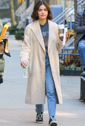 Актрисы, как и представительницы любых других профессий, тоже любят простые и легкие в интерпретации аутфиты, которые не требуют временных затрат или сложных стилистических изысков. Надел и пошел – то, чего так хочется не только по выходным, но и в особо загруженные будни. Такую идеальную для себя формулу подобрала Люси Хейл: 20 марта звезду заметили в простых базовых джинсах, удобных кедах, футболке с принтом и длинном однобортном пальто светлого кремового оттенка.