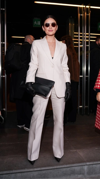 Актриса в очередной раз доказала, что черно-белым луком можно покорить мир. Она надела белоснежный брючный костюм и дополнила его безупречными контрастными деталями. Вместо топа Люси выбрала бра, который выглядывал тонкой полоской. Ансамбль аксессуаров дополнили кожаные перчатки, клатч, длинная блестящая цепочка, набор мини-сережек и круглые солнцезащитные очки. Завершили эффектный наряд остроносые лодочки.