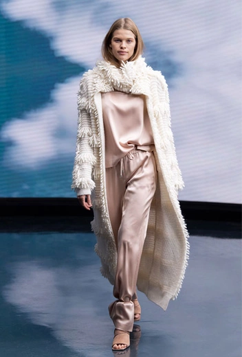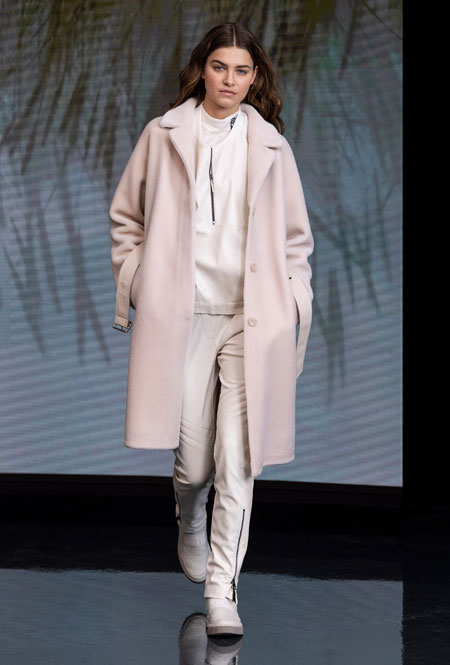 В новом модном сезоне бренды продолжают эксперименты с digital-технологиями, и Marc Cain не остался в стороне, представив новую коллекцию в онлайн-формате. Ключевыми направлениями будущего сезона стали многослойность и разнообразие материалов – легкие шелковистые ткани сочетаются с плотными ворсистыми. Особенно ярко контраст текстур заметен на трикотажных изделиях. Расслабленные образы – отражение тенденции на переосмысления роли loungewear.