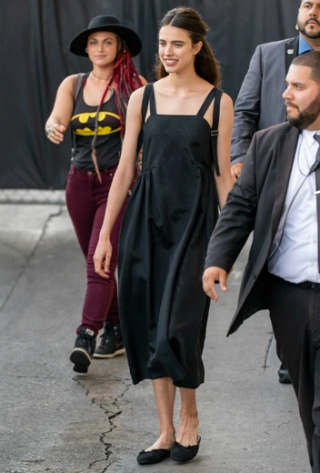 Пока солнце светит вовсю, мы стараемся выйти за рамки однотонных гамм и перейти на яркую сторону — хотя бы на несколько месяцев. Однако носить черный никто не запрещает. Более того, обыграть его можно очень стильно. Отдайте предпочтение минимализму и лаконичности, как это сделала топ-модель, и черный станет вашим лучшим другом. Кстати, балетки тут будут очень кстати: несмотря на то, что модельеры не очень жалуют эту модель даже на подиумах, в данной комбинации они смотрятся весьма органично.