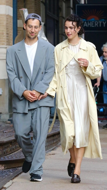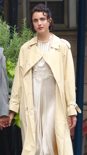 Пока холода не наступили, предлагаем повторить недавний выход Маргарет Куэлли, в котором она отправилась на прогулку со своим супругом. Американская актриса примерила нежное шелковое платье в сливочном оттенке в винтажном стиле и накинула поверх него лаконичный тренч. В качестве обуви звезда выбрала кожаные лоферы с закругленным мысом, которыми легко дополнить самые разные аутфиты.