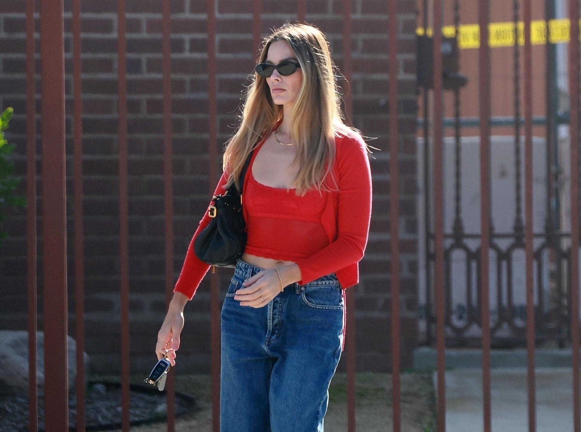 Марго Робби снова показывает, как работает формула «базовый верх и джинсы», если у тебя есть вкус: плотный ярко‑красный кардиган с укороченной майкой в тон подчеркивают талию, а прямые синие джинсы балансируют образ и делают его более «приземленным». Черные балетки и винтажная сумка добавляют к этому аутфиту немного парижского настроения, так что обычная прогулка по городу превращается в референс для образа настоящей голливудской дивы off-duty.