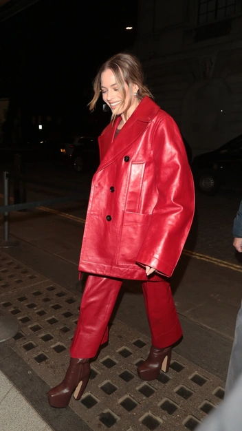 Благодарим промо-тур фильма «Вавилон» за Марго Робби — от актрисы невозможно оторвать взгляд. На вечеринке она появилась в тотал-луке из осенней коллекции 2022 бренда Bottega Veneta, сотрудничество с которым стало на момент самой обсуждаемой новостью в фэшн-индустрии. Знаменитость надела коричневый топ, широкие кожаные брюки и объемный пиджак, повторяющий силуэт буквы D. Завершили образ ботильоны на высокой платформе и минималистичные серьги Марго.
