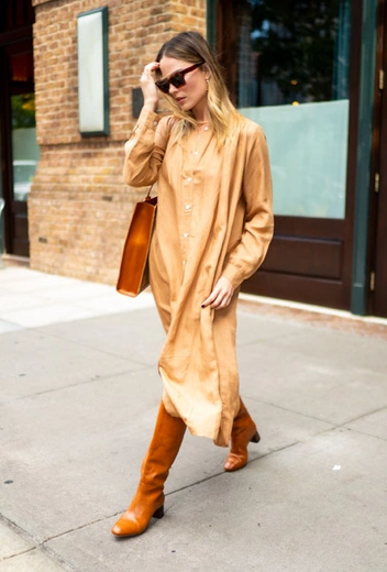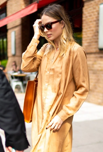 Самой универсальной палитрой осени уже давно признаны все оттенки коричневого: от светло-бежевых до карамельных и шоколадных. Однако носить ее правильно – так, чтобы образ не получился чересчур скучным и однообразным – умеют далеко не все. Удачный образ в коричневой гамме на днях показала нам Марго Робби: девушка выбрала светлое нюдовое платье от Mille и добавила акценты насыщенных цветов – вместительную карамельную сумку и длинные сапоги в тон от Loeffler Randall.