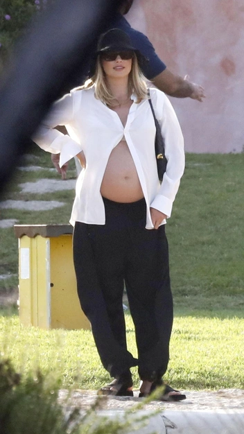 После объявлении о беременности звезда пропала с радаров, однако на днях папарацци поймали ее на модном курорте Италии — в Порто-Черво. Там Марго Робби демонстрирует стильные образы, как и полагается будущей маме. Так, она была замечена в расслабленной белой блузе, застегнутой лишь на одну пуговицу, и в свободных темных брюках. Пляжный образ звезда завершила сандалиями, панамкой и сумкой.