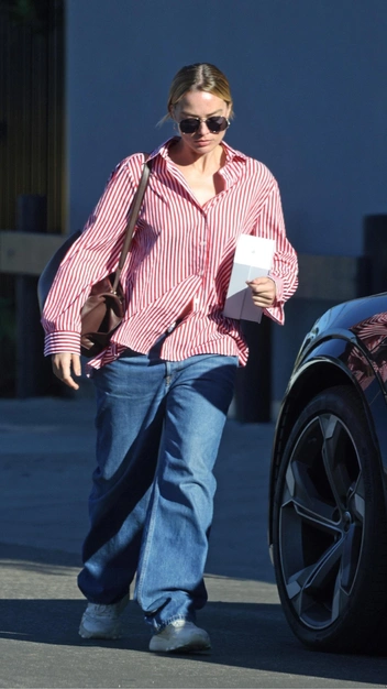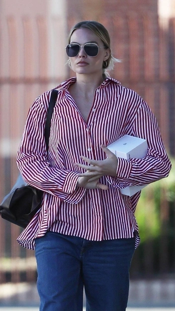 Быть звездой мировой величины — это ночью носить кутюрные платья, а днем появляться в расслабленных образах, состоящих из свободной и растянутой одежды. Но даже в этом случае Марго Робби выглядит стильно. На следующий день после «Золотого Глобуса» селебрити появилась в модном аутфите, выбрав для него полосатую рубашку свободного кроя и мешковатые джинсы на низкой посадке. Дополнила их она кроссовками на платформе, объемной сумкой и солнцезащитными очками.