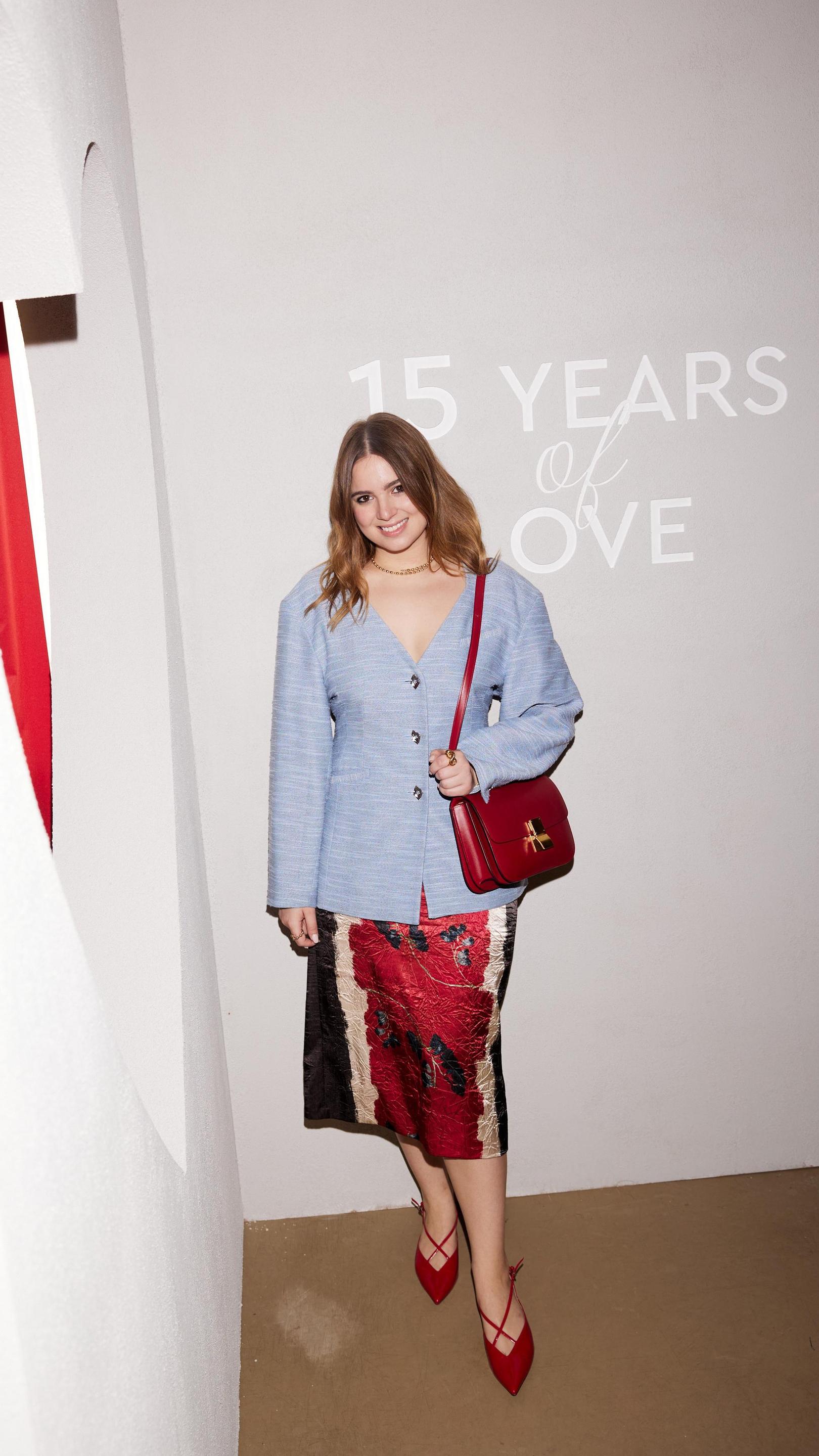 На праздник прибыли все модные друзья бренда, которые не только приняли участие в слепых свиданиях и бьюти-баре, но и показали стильные аутфиты. Например, одна из модных гостей вечера Мария Червоткина появилась в трендовом тотал-луке. Она застилизовала сетчатую юбку и классические широкие брюки, а в качестве аксессуаров выбрала кожаные сапоги и маленькую сумку.