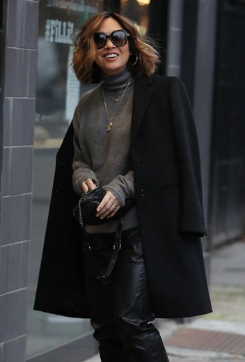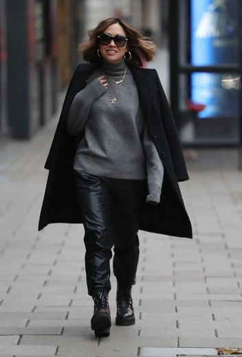 Несмотря на разнообразие оттенков в зимних коллекциях, самыми расхожими всегда останется черный и серый. Эти цвета – не такие маркие, как более светлые альтернативы, универсальные и отлично смотрятся как вместе, так и в сочетании с другими оттенками. Правда, велик риск, что образы в такой палитре будут выглядеть слишком скучно. У радиоведущей и певицы Майлин Класс есть рецепт, как сделать аутфит более интересным. Она решает экспериментировать не с оттенками, а с фактурами. Звезда сочетает мягкий серый свитер с черными кожаными брюками и завершает наряд несколькими золотыми цепочками.