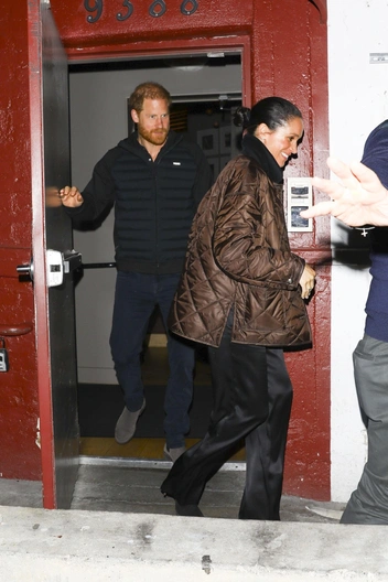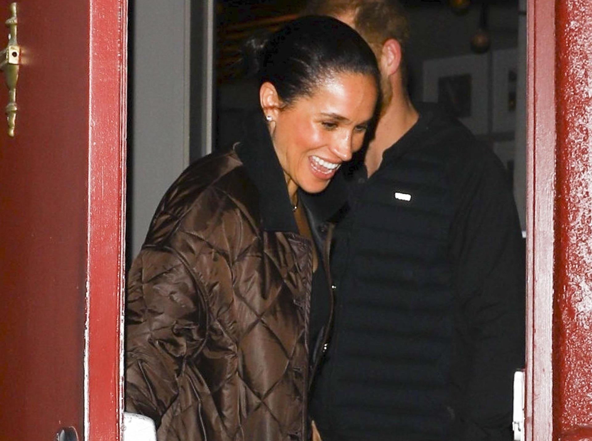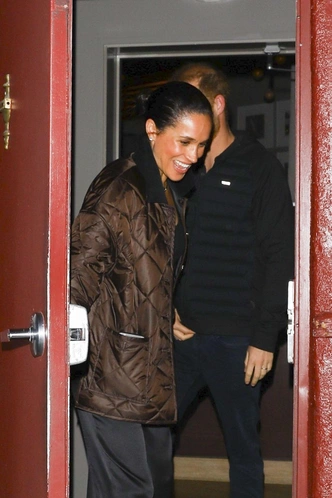 Меган Маркл собирает чисто британский образ, ставя в центр шоколадную стеганую куртку — тот самый barn jacket, который давно называют современной классикой английского гардероба. Объемный силуэт и глубокий коричневый оттенок она уравновешивает черными сатиновыми брюками, превращая практичный аутфит в вечерний городской образ, который одинаково уместен и у камина в загородном доме, и на позднем ужине в Лос‑Анджелесе.