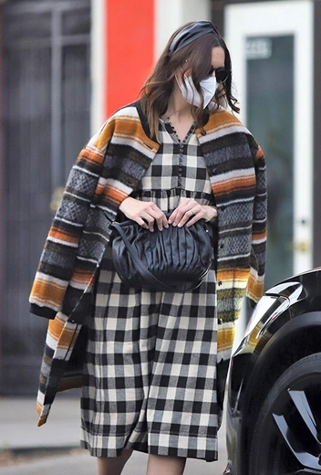 В повседневной жизни многие из нас боятся примерять акцентные принты. Что уж говорить про сочетания неординарных паттернов, которые на первый взгляд кажутся несовместимыми. В новом году советуем присмотреться к необычным сочетаниям поближе. А за ориентир можно взять образ Мэнди Мур. Девушка решила примерить платье свободного кроя с крупной клеткой и дополнила аутфит пальто в необычную полоску.