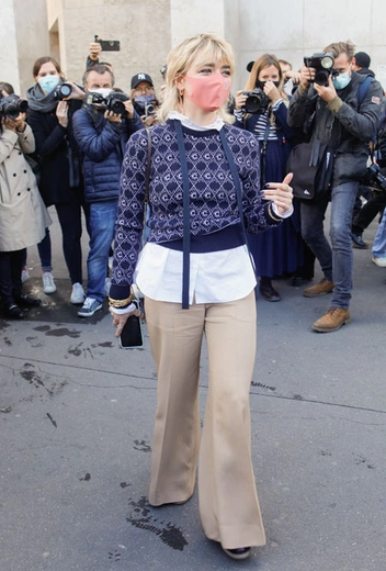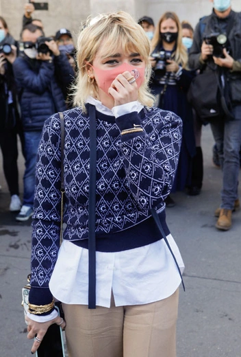 Несмотря на пандемию, многие дизайнеры решили не отказываться от оффлайн-шоу и устроили показы в привычном формате. Посмотреть на новинки будущего весенне-летнего сезона съехались и звезды первой величины. Последнее время миром моды начала активно увлекаться Мэйси Уильямс, звезда сериала «Игра престолов» и одна из самых перспективных звезд нового поколения. Девушка стала заядлым гостем модных шоу и всегда основательно готовится к выходам. На днях она посетила показ Chloé и решила выбрать сдержанный и нейтральный образ – джемпер с монограммами, белую рубашку, бежевые брюки со стрелками и пыльно-розовую маску.
