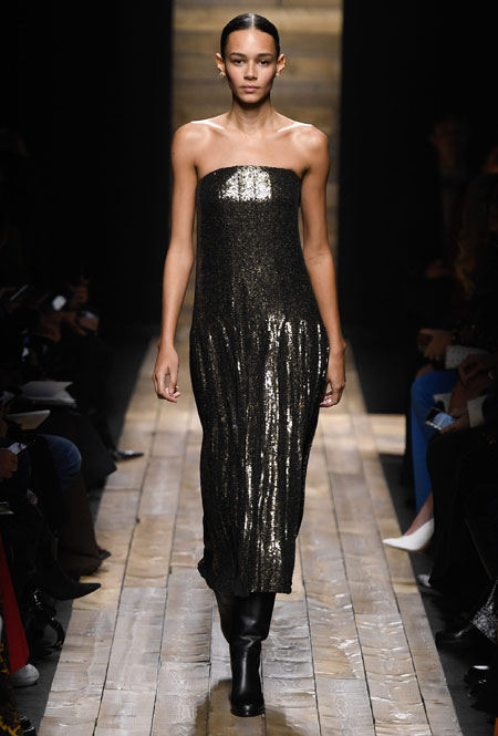 Главной темой показа Michael Kors Collection Осень-Зима 2020/21 стал «уютный гламур». Место проведения показа – Американская фондовая биржа на Манхэттене – превратилось в загородный дом с музыкальным выступлением Орвилла Пека. Гости показа были погружены в атмосферу расслабленного шика с городским лоском. Некоторые модели из коллекции были сделаны из переработанных материалов и пряжи. После показа дерево, которое использовалось для создания подиума, будет передано в дар компании Materials for the Arts. Музыкальное выступление Орвилла Пека задало тон показа, а модели от Беллы Хадид и Кайи Гербер до Адут Акеч и Фреи Беха Эриксен шли по подиуму в дымке тумана и прожекторов.