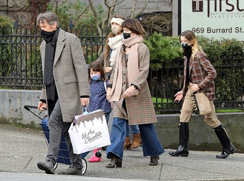После 14-дневного карантина семья Миллы Йовович вместе с мужем Полом Андерсоном и двумя дочерьми отправилась на совместный шопинг. Совершив короткий визит в Lush Cosmetics и шоколадный магазин, семья в приподнятом настроении осмотрела несколько магазинов и соседних бутиков. Актриса и режиссер в Ванкувере не случайно: семья приехали в город, чтобы поддержать 13-летнюю Эвер, которая получила свою первую главную роль Венди в грядущем фильме Disney «Питер Пэн». Девочка, которая также будет играть роль в «Черной вдове» вместе со Скарлетт Йоханссон, выбрала для шопинга клетчатый блейзер, черную рубашку, трендовые ботинки Hunter и рваные брюки цвета хаки. А Милла сделала выбор в пользу классического пальто, универсальных джинсов, светло-розового шарфа Prada и черной маски.