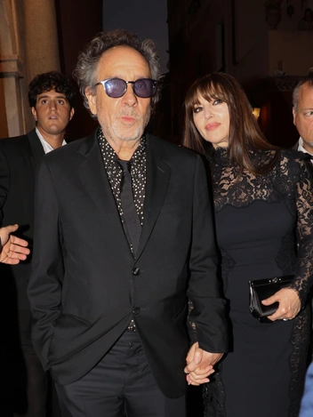 Моника Беллуччи почти всегда выбирает черный цвет для официальных выходов, и теперь она распространяет свое влияние и на Тима Бертона. Для недавнего выхода на кинофестивале в Сицилии Моника предпочла платье с активным кружевом, облегающее фигуру. А Тим Бертон выбрал черный костюм и рубашку с неожиданным принтом полька-дот.