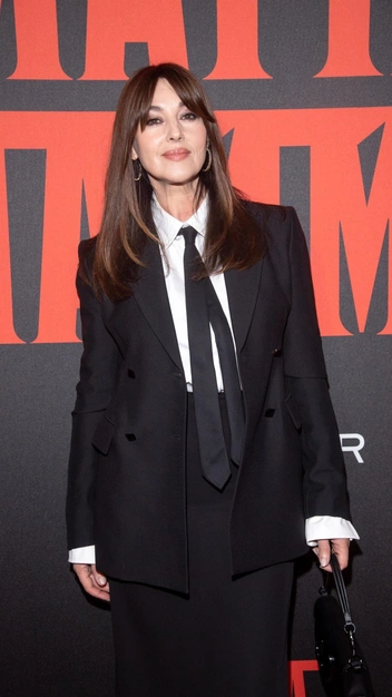 За последние несколько сезонов галстук стал одним из самых модных аксессуаров в образе, который завязывают на рубашке или же просто накидывают поверх свитера. Моника Беллуччи тоже поддалась тренду и надела белоснежную сорочку с узким черным галстуком, которые она сочетает со стильной юбкой-макси. Элегантность и томность образу придали приталенный жакет, маленькая сумка и серьги-кольца.