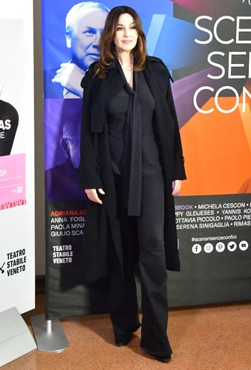 Пожалуй, нет в Италии более стильной женщины, чем Моника Беллуччи. За годы популярности она смогла создать для себя безупречный гардероб, который не устаревает со временем, выглядит актуально и содержит в себе все, что необходимо звезде для повседневных выходов или эффектных появлений на ковровых дорожках. В палитре знаменитость предпочитает сдержанные и лаконичные оттенки, а одним из самых любых цветов, конечно, стал черный. В недавнем выходе она показала, как даже в таком мрачном оттенке выглядеть на высоте. Звезда выбрала легкую струящуюся блузу с воротником аскот, классические брюки и макси пальто, которое давно стало мастхэвом женского гардероба.