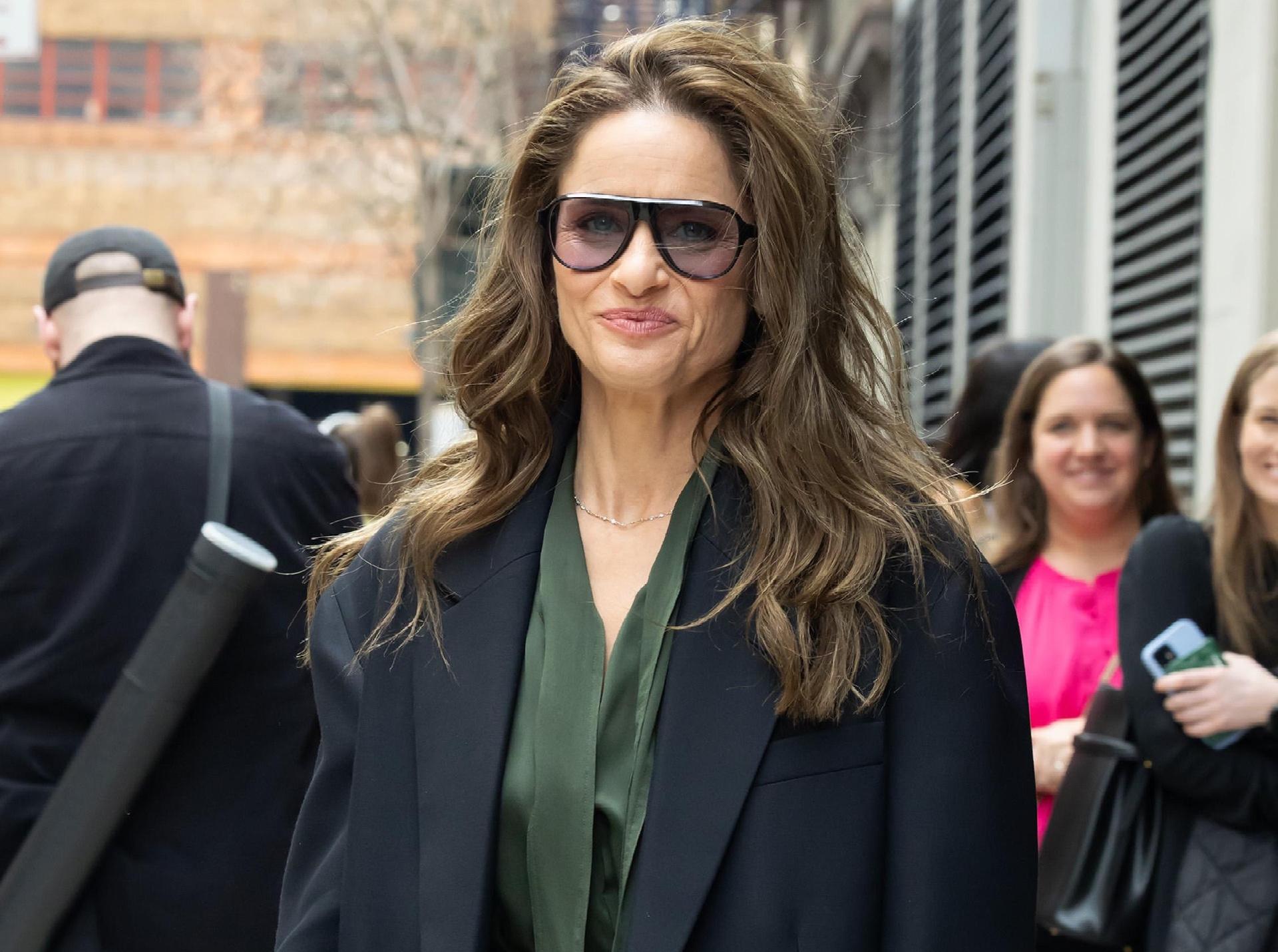 Аманда показывает, как должна выглядеть взрослая тихая роскошь в 2026‑м: поверх струящегося хаки-комбинезона она надевает строгое черное оверсайз-пальто, превращая расслабленный шелк в почти деловой вечерний наряд. Крупные авиа‑очки, свободные волны и структурные ботильоны добавляют образу кинематографичности — это как если бы героиня из интеллектуального триллера вышла на кофе‑брейк в центр города, не потеряв ни грамма своей харизмы.